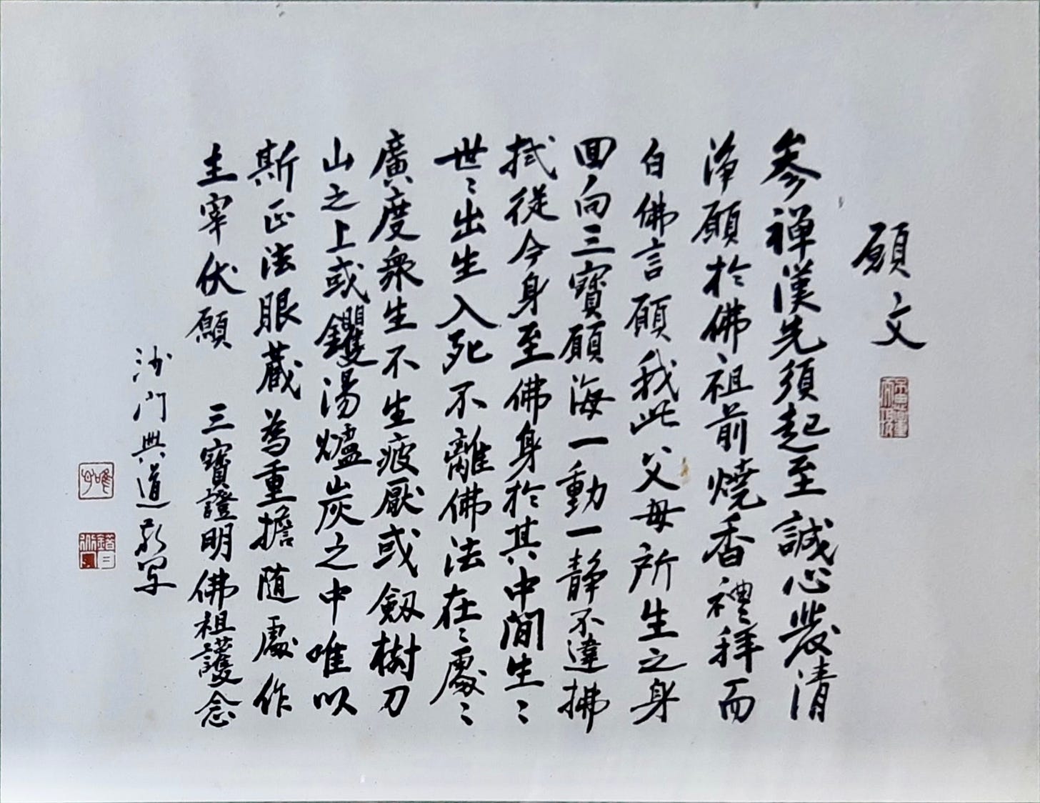 I vow that this body, born of my mother and father, be dedicated to the boundless ocean of vows of the Three Treasures. In all matters of daily life, may I never depart from the Buddha’s teaching. From this present life until I attain the body of a Buddha — through birth and death, again and again — may I never stray from the Dharma. In each and every lifetime, may I tirelessly guide all living beings toward liberation. Though I may fall into the hells and face the torment of sword-trees or knife-mountains, or be plunged into boiling cauldrons and burning coals, may I take the Treasury of the True Dharma Eye as my sole refuge and my burden to bear, and serve as a master wherever I am.